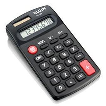 Calculadora de bolso com 8 dígitos Visor: Cristal Líquido. Funções: 4 operações básicas, raiz quadrada, porecentagem, desligamento automático Alimentação:1 pilha AA e célular solar.