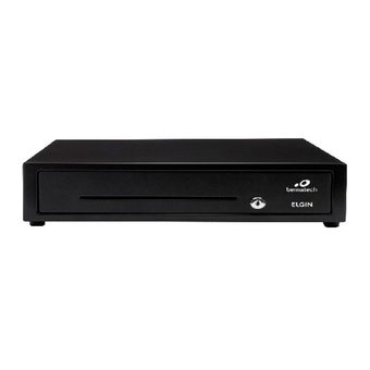 | Especificações gerais | - Base em aço pintado na cor preta. - Uma fenda para introdução de cheques, tiquetes ou outros documentos sem a necessidade da abertura da gaveta. - Os cheques e documentos não ficam visíveis quando a gaveta está aberta - Abertura horizontal manual através da chave ou elétrica por pulso elétrico, ainda possui mecanismo de abertura de emergência. - Módulo interno (niqueleira) em poliestireno de alto impacto com 5 divisões para notas e 6 divisões para moedas - Fechadura de seguran ça - Pés de borracha |