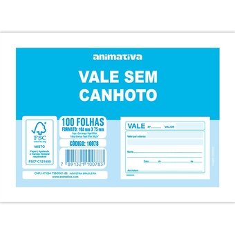 Talão de Vale sem Canhoto 100 Folhas 10078 Animativa